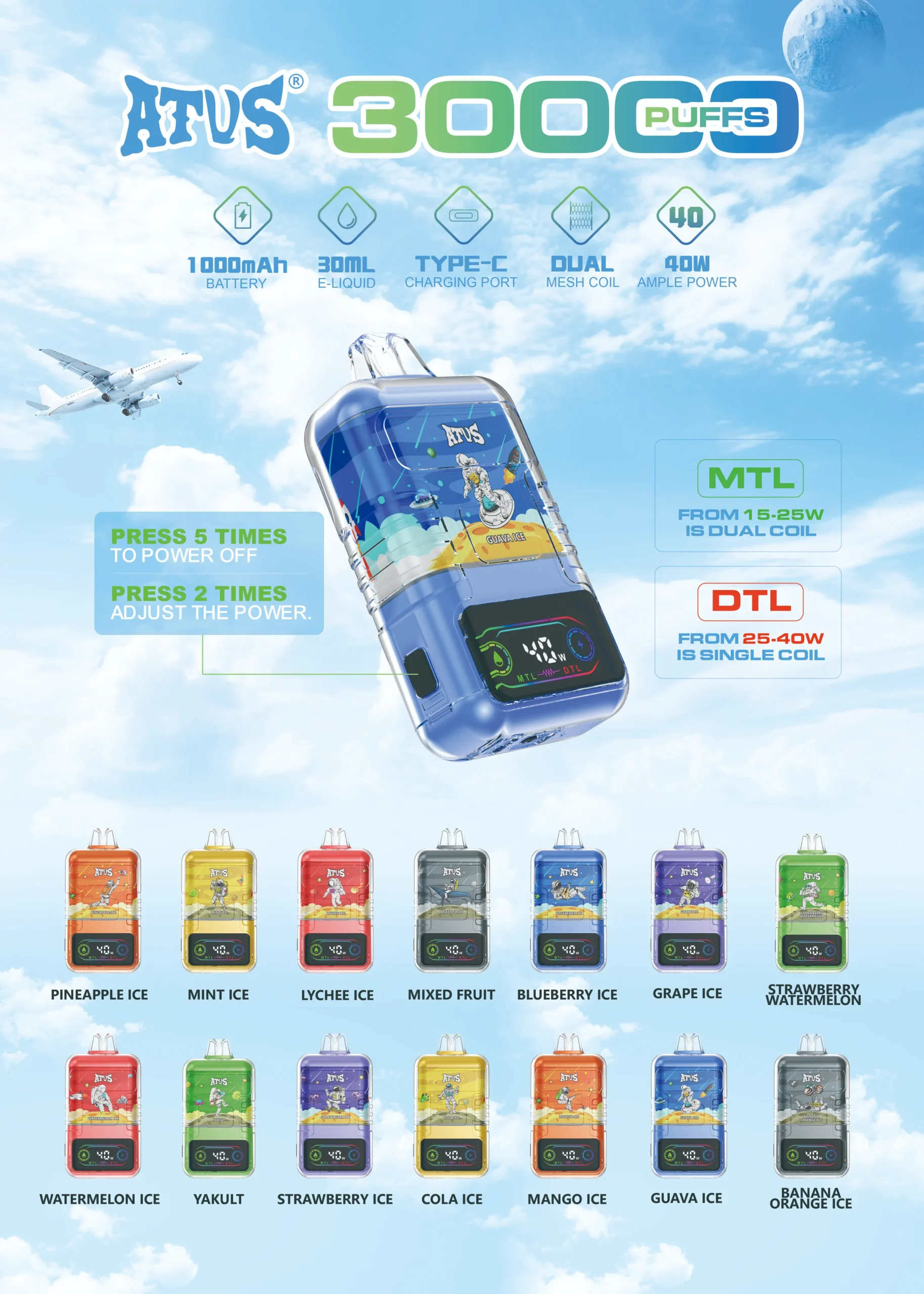 ATVS Astronaut 30000 Puffs | 20ml | 1000mAh | Dvojna Mrežasta Tuljava | Enkratna Vape Naprava